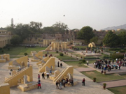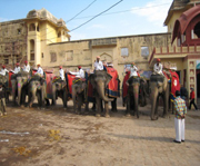 | インド最大級の古代天文台ジャンタルマンタル。 | ファティプールシクリ。勝利の門には美しい幾何学模様が描かれています。 | アンベール城への象タクシー乗り場。ゆったりゆっくりと登っていきます。 |