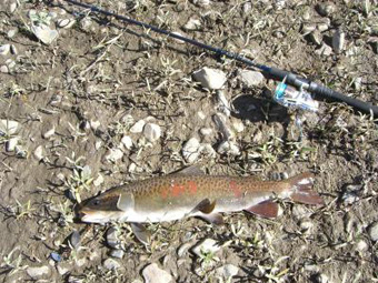 ルアーは昨日同様、ミノーを使用。午前中3匹の40㎝程度のレノックが釣れた。
