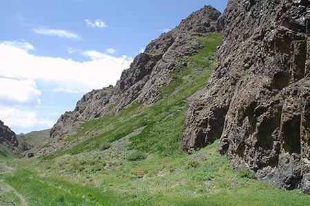 | 朝食後、車にてあたり一面の砂漠を辿りながら鷲の谷と呼ばれるイーグル渓谷(ヨーリンアム)へ。