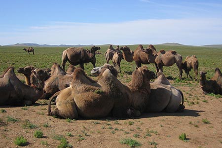 途中、ゴビ砂漠に生息する動物の剥製を展示したゴビ博物館に立ち寄ります。 到着後、大渓谷の中をピクニック。その後、南ゴビの遊牧民のゲルを訪問。 ゴビ地方に生息するふたこぶラクダに乗ってみましょう。 乗ふたこぶラクダ体験。 遊牧民特製手作りチーズや乳茶、時期により馬乳酒など遊牧民との交流をお楽しみください。 |