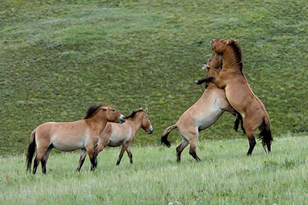 朝食後、車にて保護区内に生息する野生馬タヒに会いに行きます。 タヒ野生馬センター資料館も見学します。 タヒはモンゴル馬の祖先といわれています。 朝は比較的低地におりてきているので、近くで出会える確率が高くなります。 見学後、ウランバートルへ。 到着後、フリータイム。 |