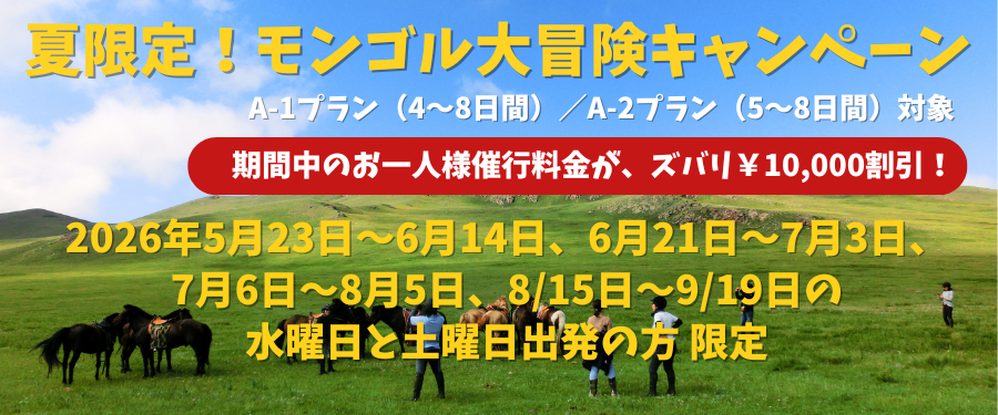 2026年夏季モンゴル ★ひとり旅応援団割引 開始★ 楽しくお得!!