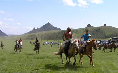 ナーダムの花形競馬。騎手は9歳以下の子供たちです。