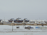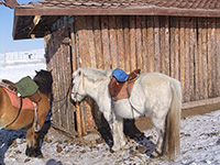 | 冬のシルバーチンギスハーン像 | 冬の馬はもこもこしてます | 冬のツーリストキャンプ 屋外トイレ(外観) |