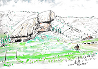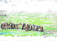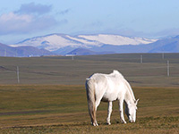 | 草原にて一休み | 雪山をバックに | |