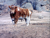 | いたるところにオボーがあり、外国に来たことを感じました。 | 休憩中 | 毛がもこもこした牛。 ウフル(=モンゴル語で牛)っていうんだと教えてもらいました。 |