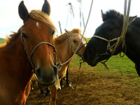 | 乗馬前の準備運動 | 馬の乳しぼり | |